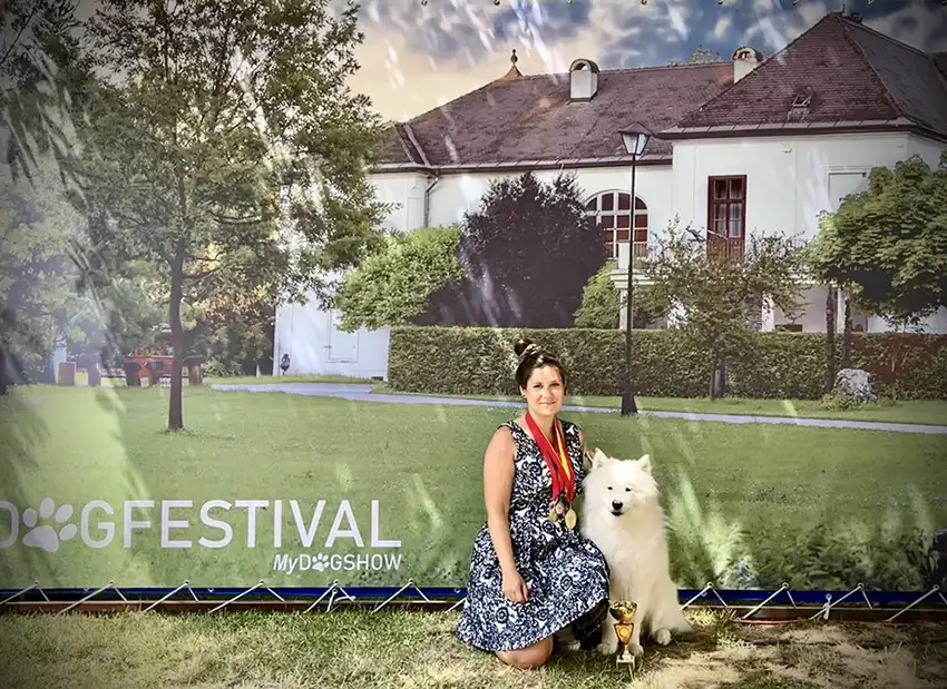 Mám chovatelskou stanici a čtyři psy: samojedky Arinka (3) a Queenie (8), švédský laponský pes Lili (9 měsíců) a borderák Isaac (5, patří manželovi). Výstavy, klub samojedů, dogtrekking… už je to takový náš styl života. Logistika hlídání psů je skládačka (rodiče, kamarádka se samojedem), ale jde to.
